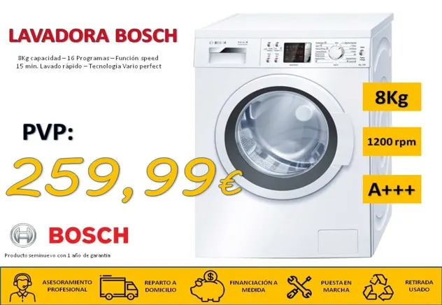 8Kg de capacidad, 16 programas, función speed 15 minutos de lavado rápido Tecnología vario perfect